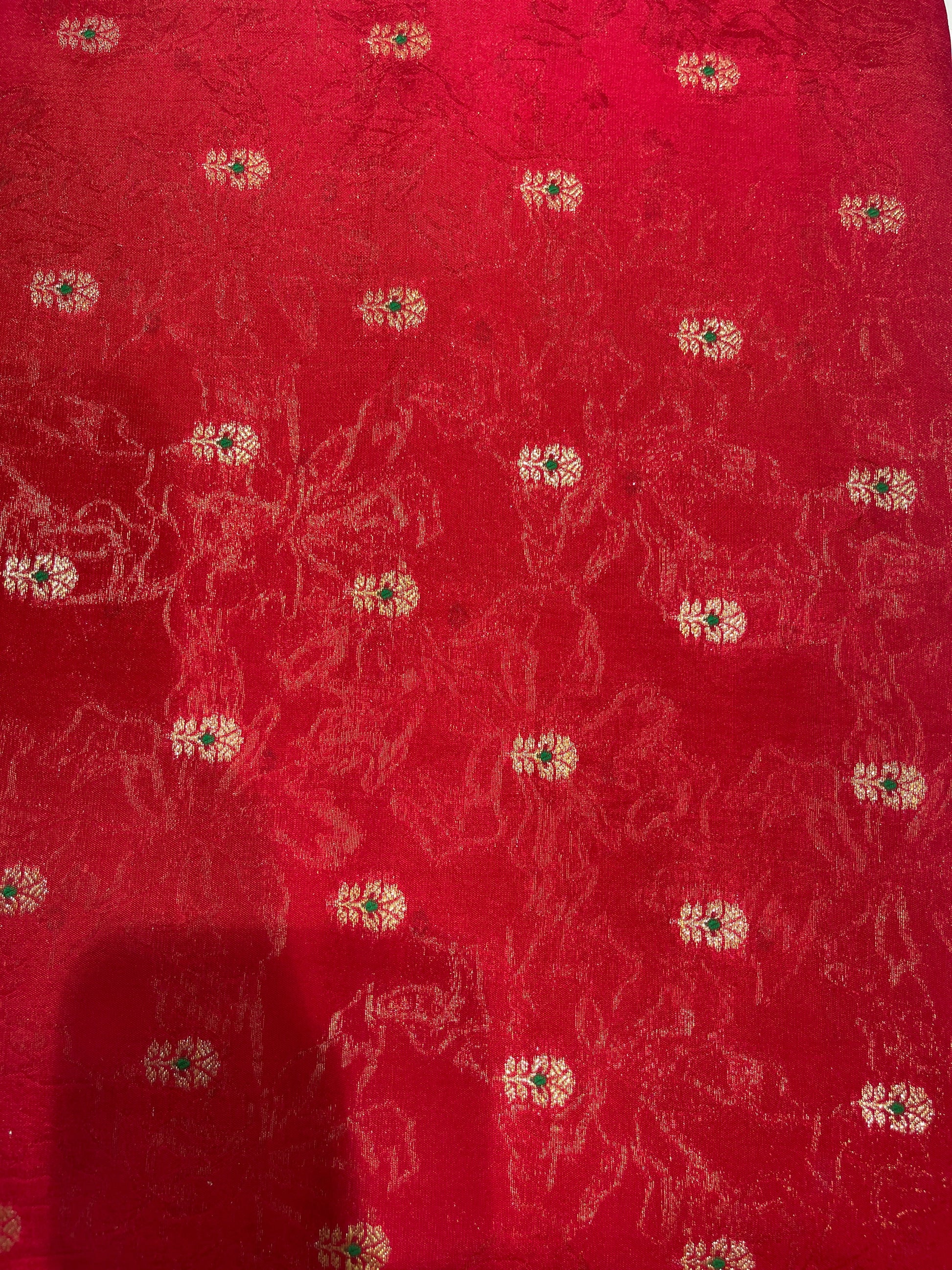 Pure Silk Brocade Fabric with Traditional Zari Motifs